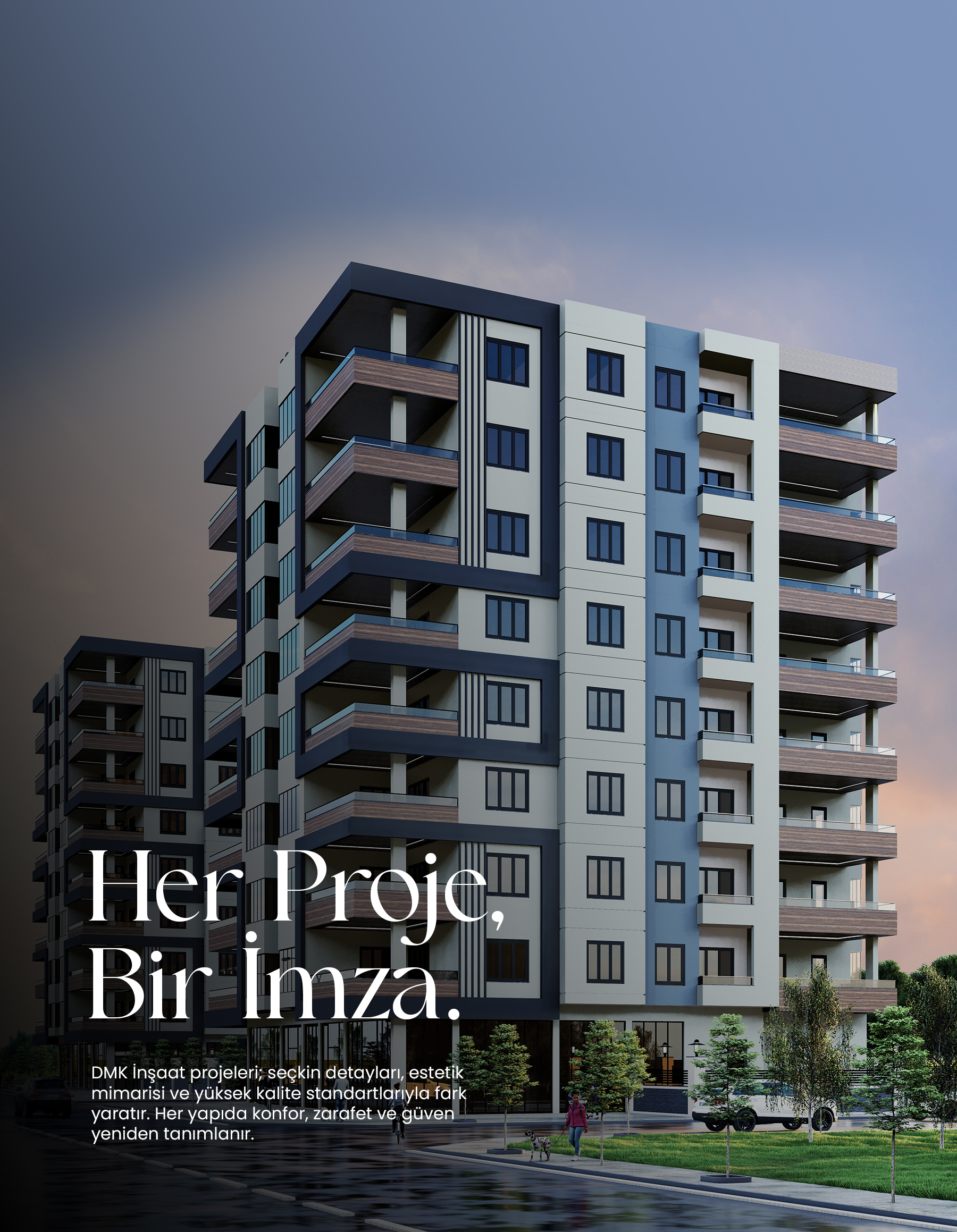 DMK İnşaat, kuruluşundan bu yana inşaat sektöründe kalite, güven ve estetiği bir araya getiren, saygın ve yenilikçi bir marka olma vizyonuyla hareket etmektedir. Her biri alanında uzman kadrosu, modern teknik donanımı ve çözüm odaklı yaklaşımıyla, mimari değerleri geleceğe taşıyan nitelikli projelere imza atmaktadır.